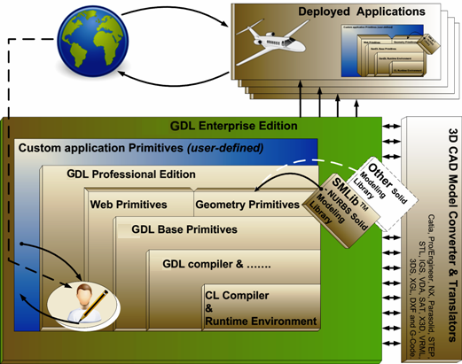 GDL integrates tightly with the industry-leading SMLib Solid Modeling Kernel. With SMLib under the hood, GDL's geometric high-level primitives (HLPs) are building blocks which support assembly modeling, meshing, and rendering in several different formats, including directly in the web browser without the need for plugins.